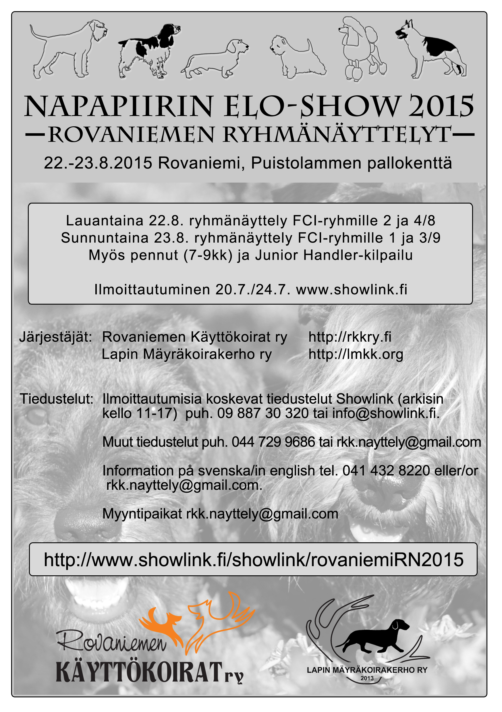 Rovaniemen Käyttökoirat ry, Lapin Spanielikerho ry ja Lapin Mäyräkoirakerho ry järjestävät