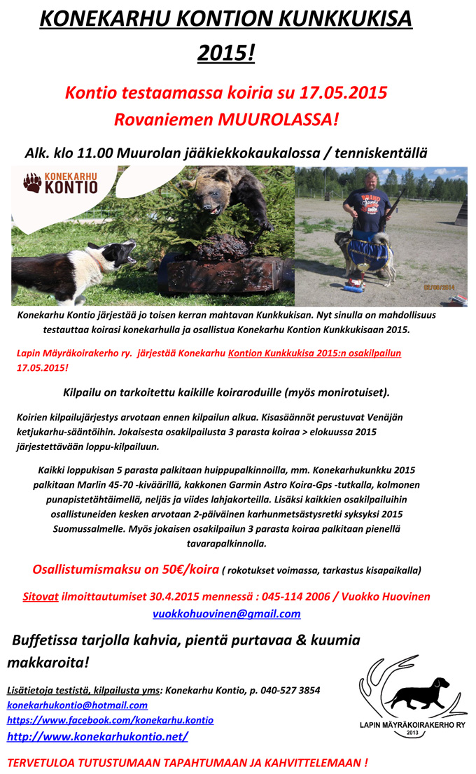 - 17.5. Konekarhukunkku 2015 osakilpailu Muurolassa